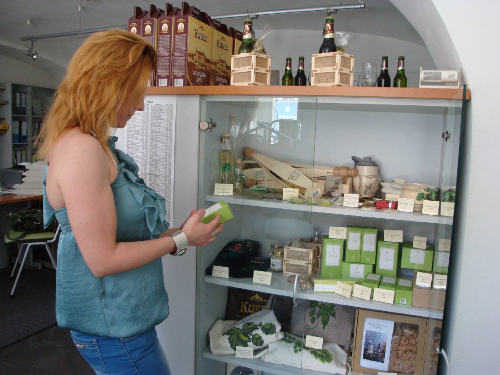 V TIC-u Žalec lahko izbirate tudi med pestro ponudbo spominkov, kupite lahko tudi številne izdelke blagovne znamke Zeleno zlato, ki ponuja dobrote spodnjesavinjskih kmetij.